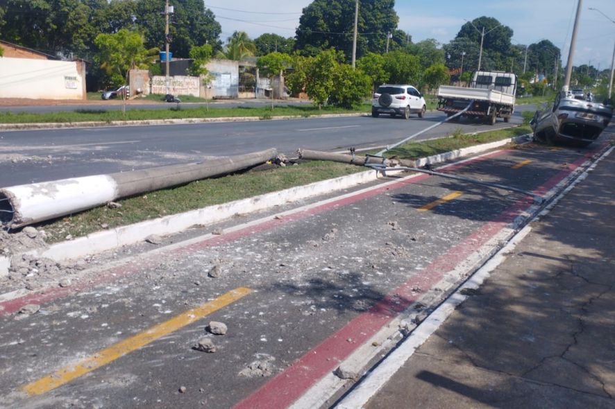 De acordo com o boletim de ocorrência, o carro seguia pela via quando bateu contra o poste e capotou. Com o impacto, a estrutura caiu e, depois, foi retirada da pista por testemunhas que estavam no local.