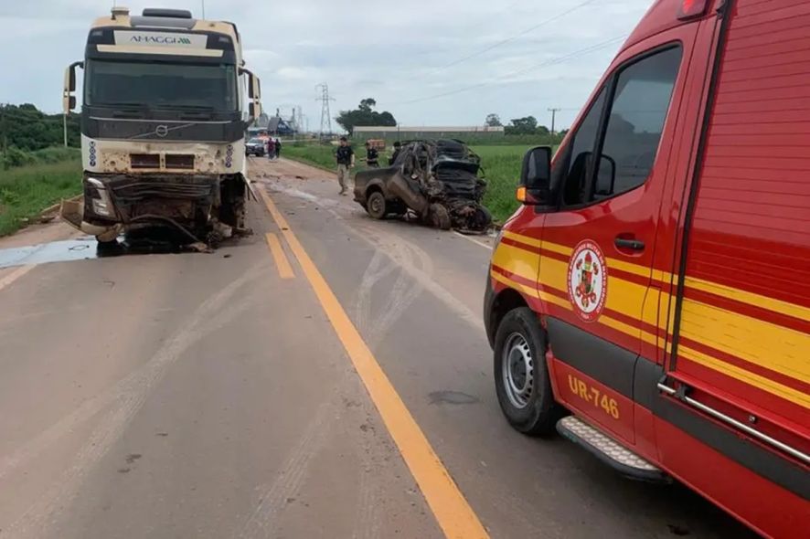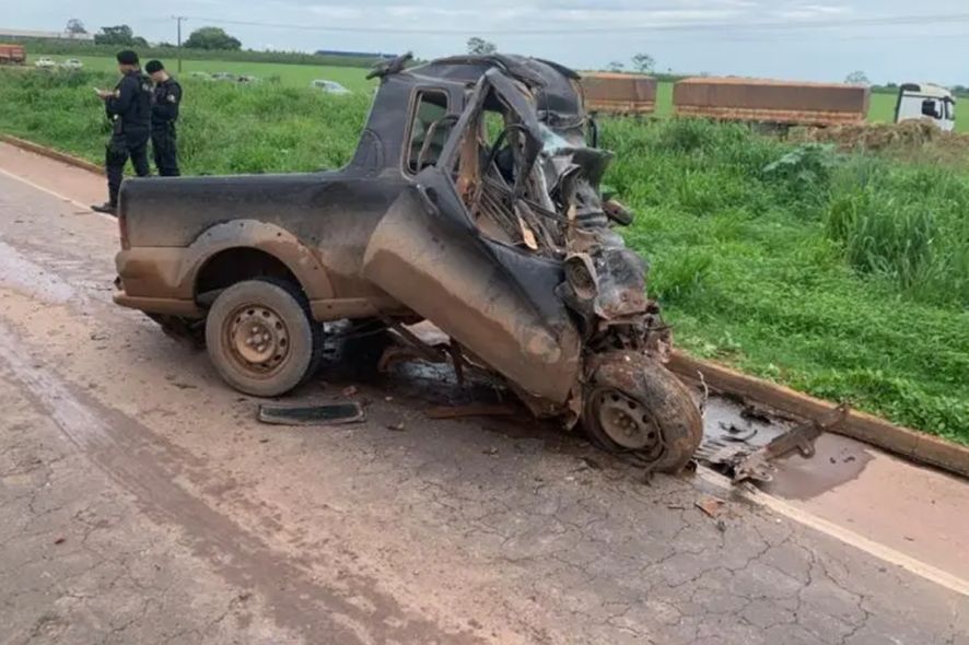 A colisão envolveu uma carreta bitrem e um Fiat Strada de cor preta. O motorista da Strada morreu ainda no local do acidente, preso às ferragens.