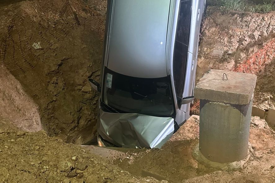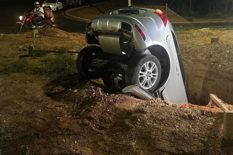 Uma mulher de 49 anos perdeu o controle do veículo na noite do último domingo (5) e caiu em uma valeta de obra de drenagem, na Avenida Milton Figueiredo, no Centro Político Administrativo, em Cuiabá.