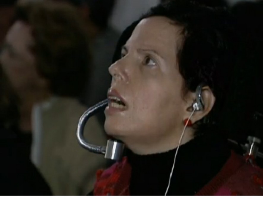 Uma mulher que praticamente só mexe os olhos e a boca tornou-se nesta quarta-feira (9) doutora pela Universidade de São Paulo (USP). Ela produziu sua tese de doutorado em arte e educação utilizando apenas os olhos e pequenos movimentos do queixo – únicas formas pelas quais ela consegue se expressar.