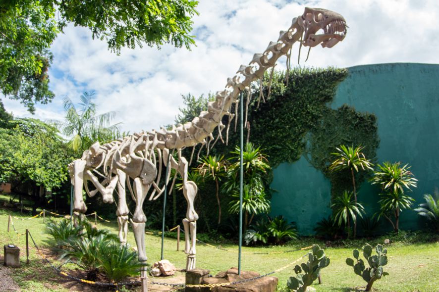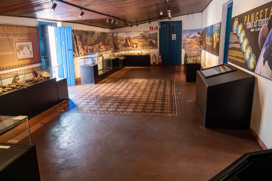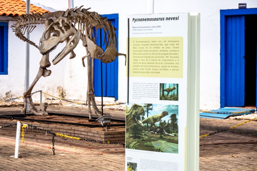 O museu também abriga fósseis encontrados na Chapada dos Guimarães, de um período em que a região esteve submersa pelo mar há cerca de 300 milhões de anos. O acervo inclui réplicas de dinossauros que viveram na área, produzidas a partir de fragmentos como dentes e vértebras.