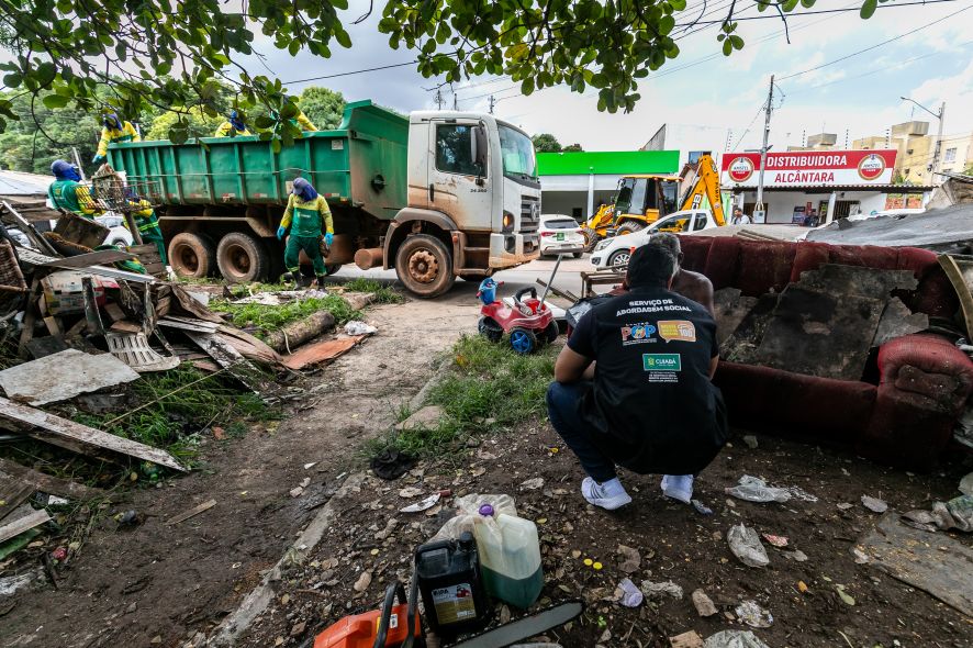 A operação foi conduzida pela Empresa Cuiabana de Zeladoria e Serviços Urbanos (Limpurb), que retirou os materiais acumulados nas proximidades de um córrego, prevenindo a obstrução do canal e evitando riscos de alagamentos e enchentes.