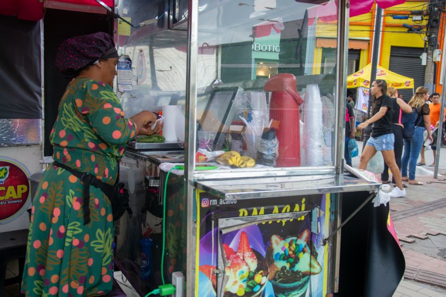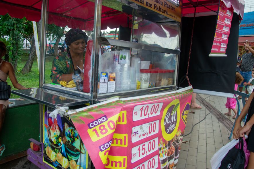 Em contraste com a realidade do comércio fixo, trabalhadores do setor informal relataram melhora significativa nas vendas. Vendedora de açaí na Praça Ipiranga, Márcia disse que o fluxo de clientes aumentou nos últimos meses.