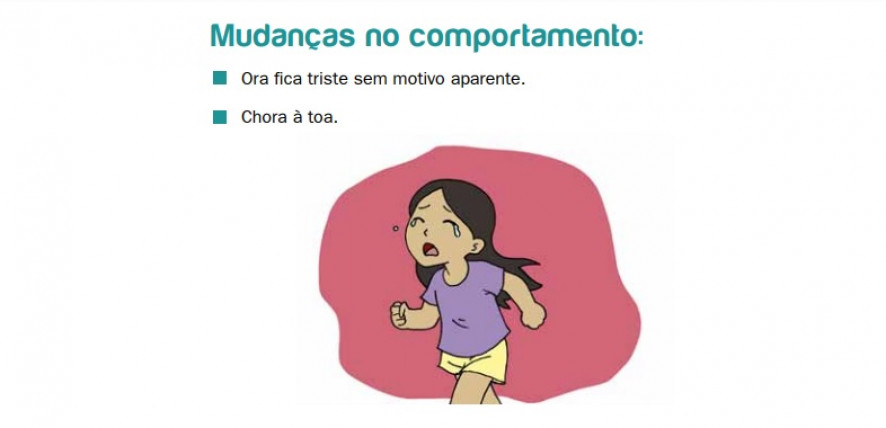 "Geralmente alguns pais descobrem quando as crianças apresentam os seguintes sinais; aparece uma sujeirinha na calcinha da criança, mudança de comportamento, choro sem motivo, irritação e agressividade. Geralmente ela aumenta ou diminui de peso, começa a agredir outras pessoas, então isso a gente vê muito", explicou delegada.