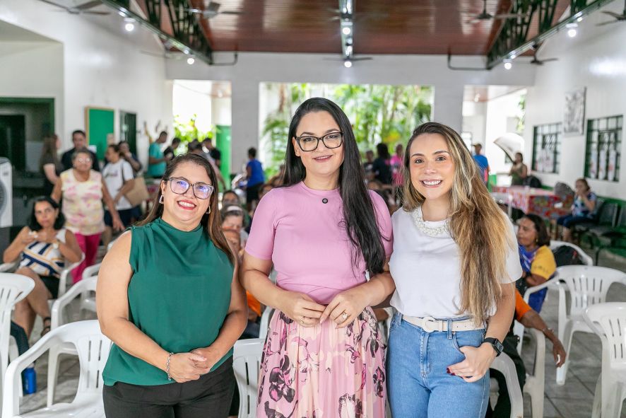 Durante o evento, a primeira-dama e vereadora Samantha Iris vistoriou a estrutura do espaço e destacou a importância de levar informação diretamente aos idosos, considerando que a internet aproxima, mas também expõe a riscos.
