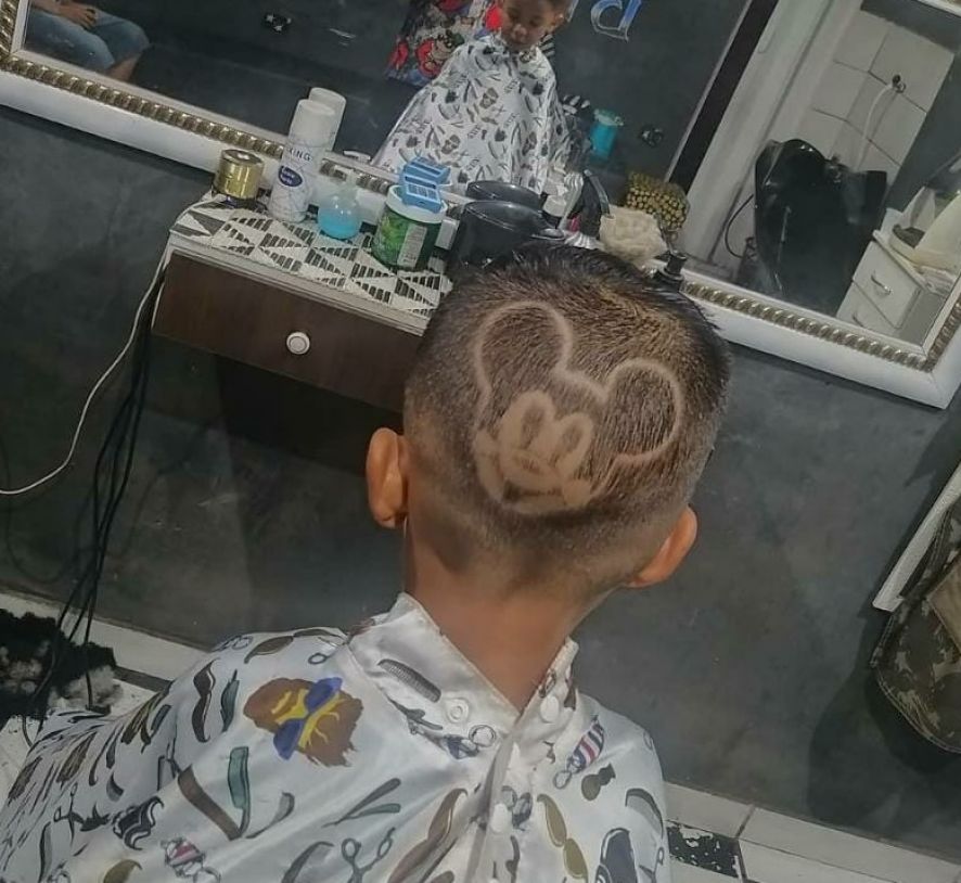 "Quando comecei fazia os desenhos no cabelo de amigos, vizinhos e familiares. Não cobrava nada, porque era algo aleatório mesmo. Meu primeiro corte já foi um desenho, escrevi de um lado 'mãe' e de outro 'pai'. Depois, em um primo, desenhei uma Nossa Senhora".