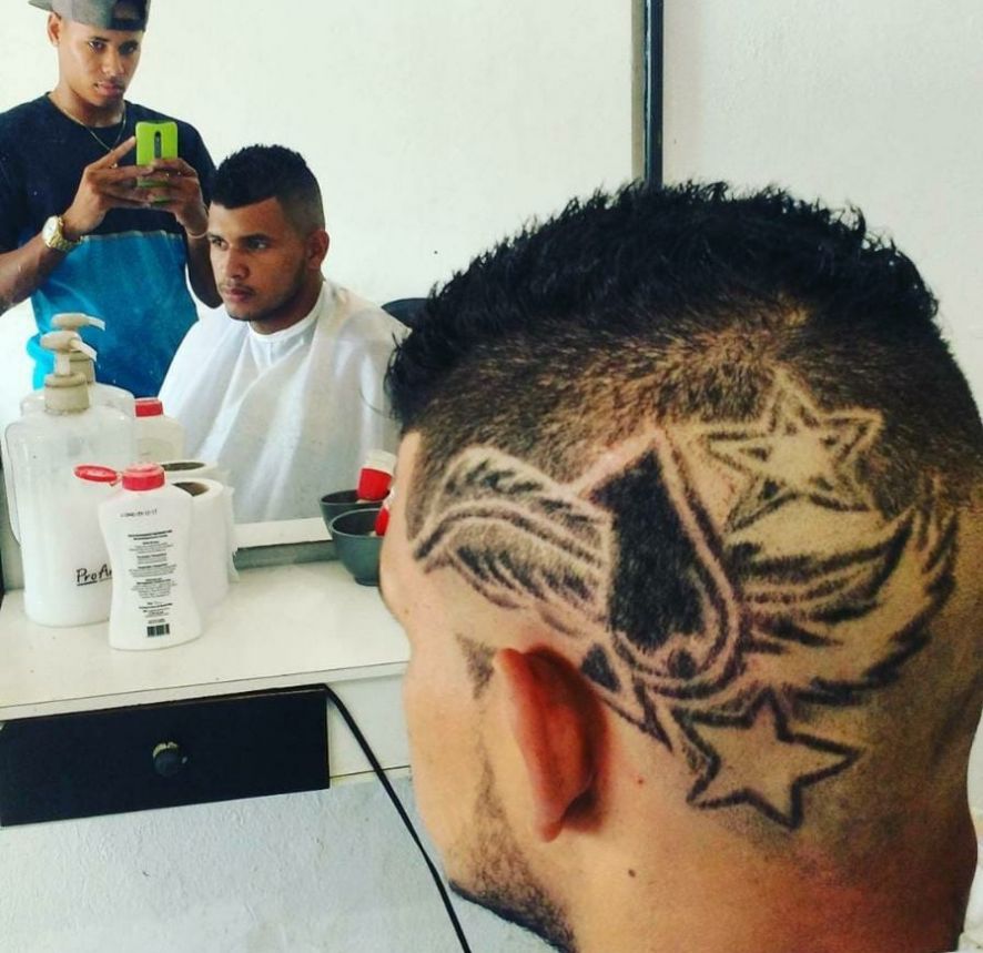Desde então não parou mais de fazer penteados com desenhos personalizados, aventurando-se ainda mais nos rabiscos feitos com navalha.