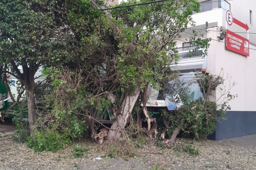 Informações preliminares apontam que o ônibus seguia no sentido bairro-Centro quando, ao fazer uma curva, perdeu o freio e atravessou a avenida.