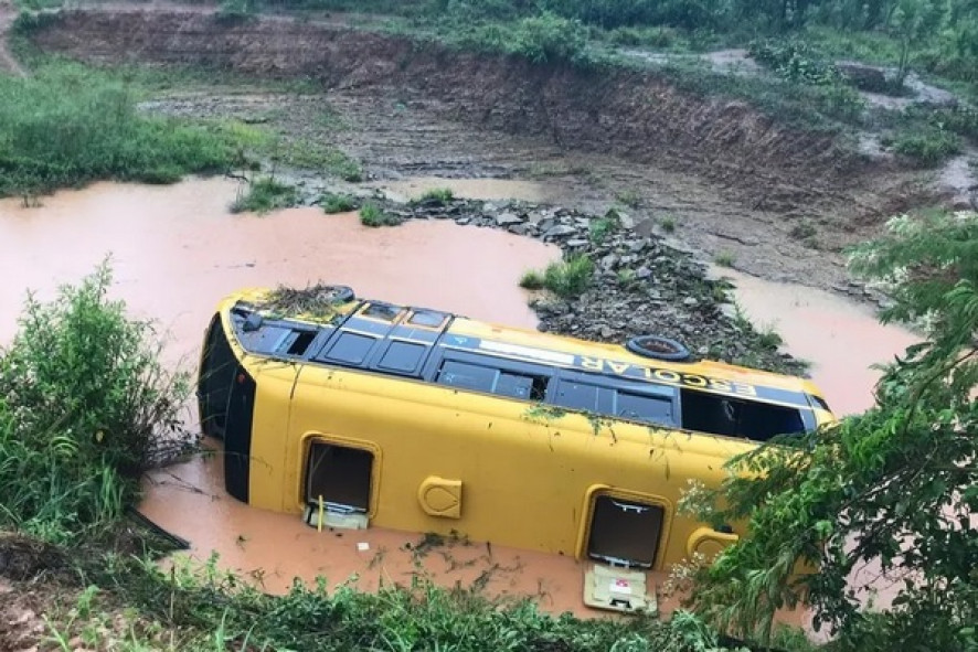 Um ônibus escolar com 15 crianças tombou e caiu numa ribanceira na tarde de terça-feira (19) e deixou quatro alunos feridos, na zona rural de Tangará da Serra (242 km de Cuiabá). O acidente aconteceu em uma estrada vicinal.