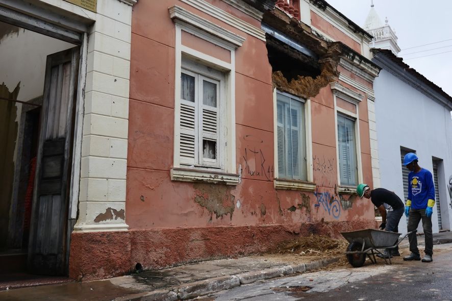 Fotos e vídeos registrados no local mostram os danos causados pela chuva no casarão histórico.