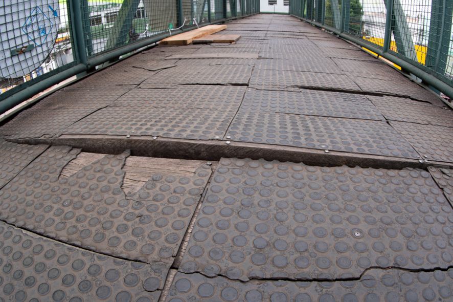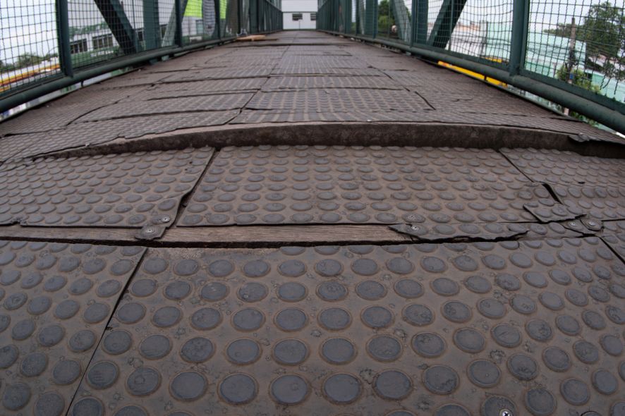 Como estão implantadas em locais com grande circulação de veículos e sem proximidade considerável de semáforos e faixas de pedestres, as pessoas atravessam as passarelas com os riscos que as falhas estruturais apresentam.