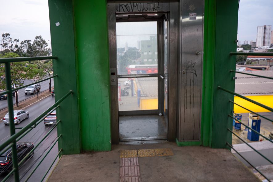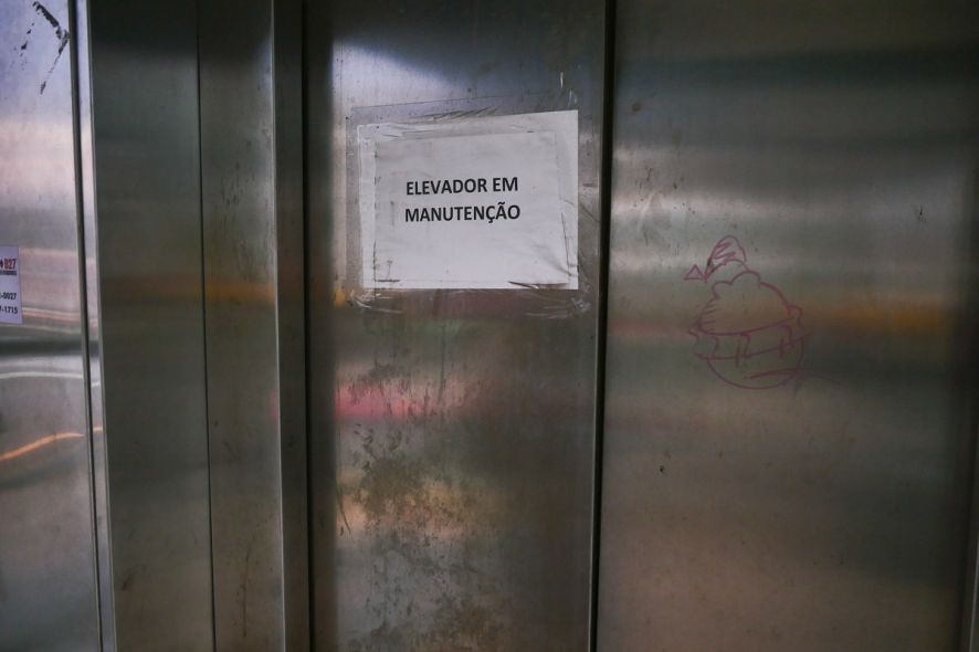 No entanto, um dos elevadores não está funcionando, estando em manutenção, e uma das lâmpadas está pendurada, o que pode facilitar acidentes caso alguma pessoa não veja e esbarre nela.
