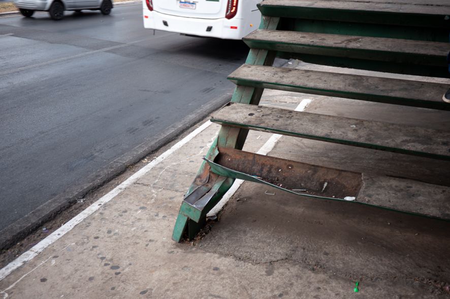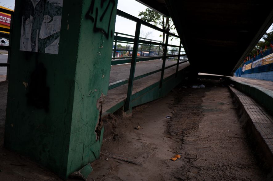 Além da falta de qualidade do material, a iluminação, a falta de cobertura e a altura do guarda-corpo também são problemas relatados pela população.