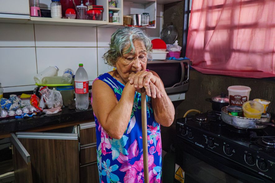 "Minhas coisas aqui estavam todas cheias de água, as gavetas... Agora nada vai prestar mais. Sou sozinha, só eu e minha filha. Eu vivo de um salário mínimo, sou doente, meu remédio custa R$ 250, mas tenho que tomar. Aí onde vai meu salário? Só tenho um salário mínimo. Vou viver de quê, meu Deus?", disse emocionada.