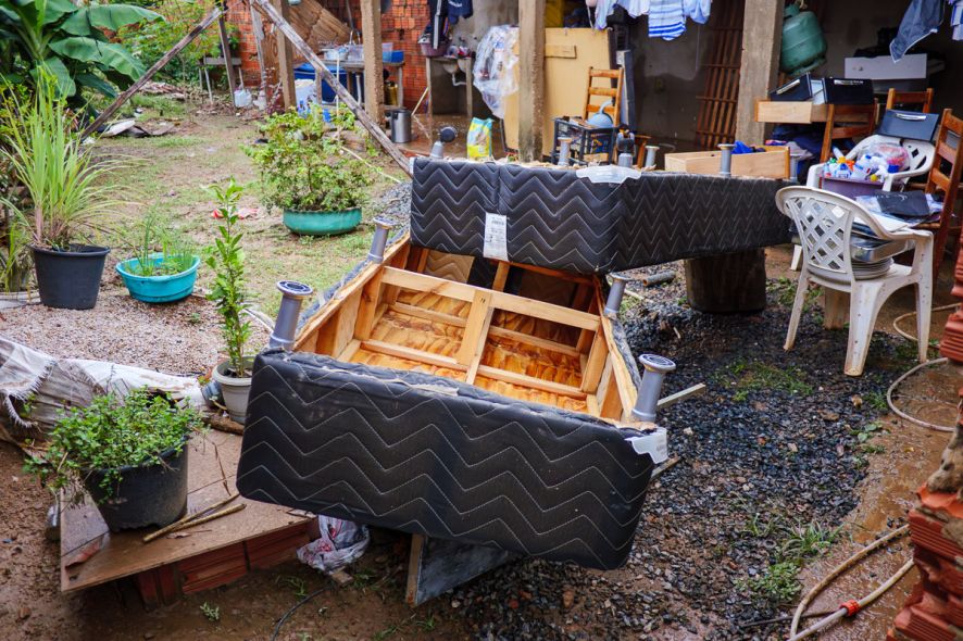 No momento do temporal, Rosa estava em casa com o filho, que, assustado, a ajudou a erguer móveis na tentativa de salvar alguns objetos. Apesar do esforço, a água entrou na residência e molhou colchões, geladeira, fogão e alimentos.