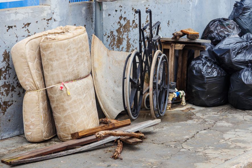 Com micro-ondas, sofá e armários na calçada, Carla agora conta com a ajuda de amigos e familiares para limpar a residência onde mora com a filha.