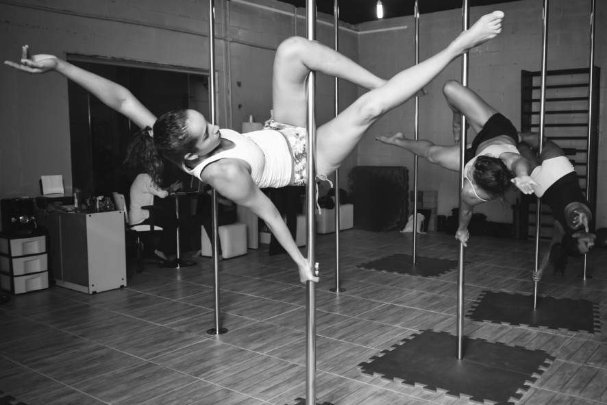 O pole dance é um conjunto de exercícios que trabalha toda musculatura do corpo