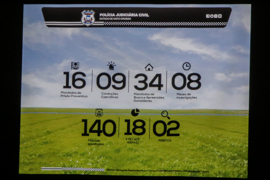 Além das prisões, também foram cumpridas 34 ordens de busca e apreensão e nove conduções coercitivas, expedidas pela Vara do Crime Organizado de Cuiabá.