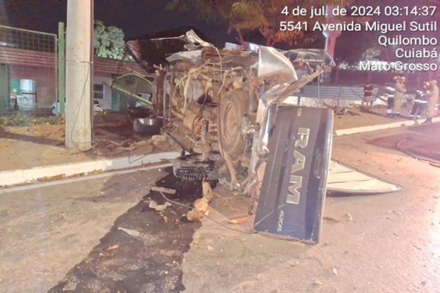 Em entrevista ao MidiaNews, o delegado Christian Cabral, da Delegacia de Especializada em Delitos de Trânsito (Deletran), afirmou que pelos danos no veículo e imagens das câmeras de segurança já dá para saber que a RAM estava em alta velocidade.
