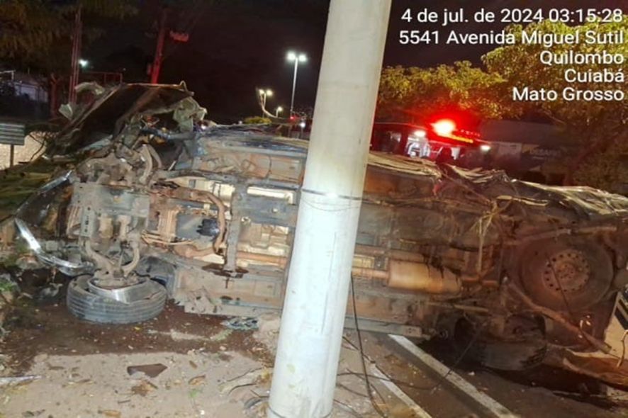 A Polícia Civil aguarda o resultado do laudo pericial para definir a velocidade aproximada da RAM 1500 que colidiu na madrugada desta quinta-feira (4) na Avenida Miguel Sutil, em Cuiabá, resultando na morte do empresário Jânio Carlos Bernal Guides.