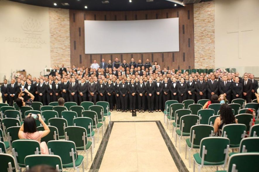 A solenidade foi realizada na Igreja Presbiteriana Central de Cuiabá. Participam da turma, 155 homens e 43 mulheres, aprovados no último concurso da Segurança Pública promovido pelo Governo do Estado.