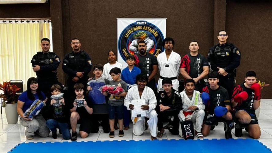 A Polícia Militar de Mato Grosso realizou, na manhã desta terça-feira (24.2), a entrega de materiais esportivos ao Projeto Lutas - Guardiões do Coxipó, do 9º Batalhão, com investimento de R$ 60 mil, fortalecendo um trabalho que transforma vidas por meio do esporte.