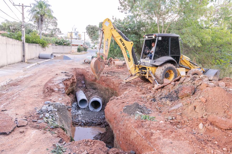 As obras envolvem a instalação de manilhas de concreto interligadas a bocas de lobo, o que permite que a água captada seja conduzida até a tubulação subterrânea e, em seguida, direcionada para córregos e rios.