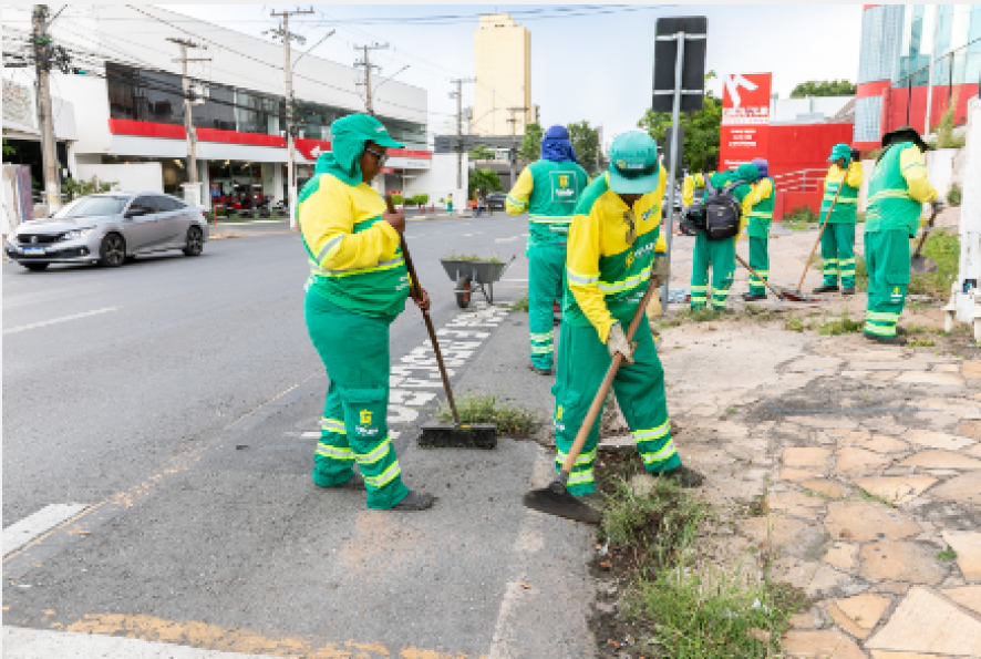 A área total a ser atendida correspondente do bairro Porto até a Av. Mato Grosso, com mais de 350 pessoas trabalhando nas diferentes frentes trabalho, só da Limpub são 300.