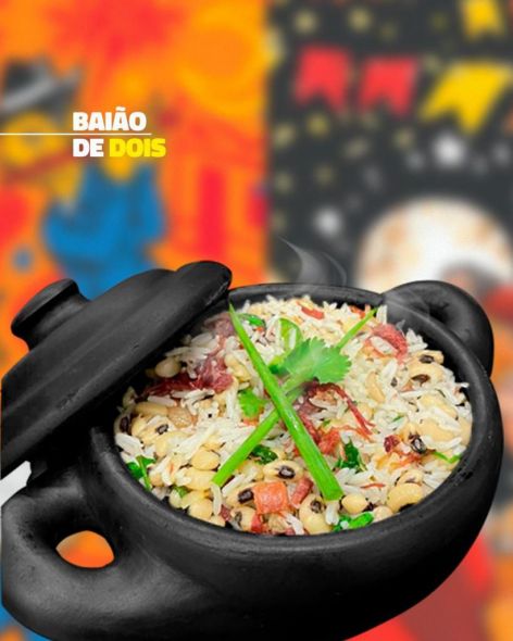 “Só que o nosso baião de dois não é aquele que surgiu no Ceará, eu fiz uma releitura. O nosso vai arroz, feijão, mas também vai bacon, calabresa, carne seca desfiada e queijo coalho”.
