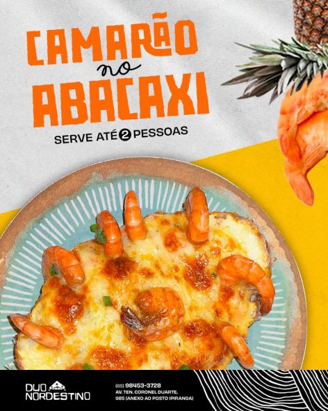 São mais de 40 opções de pratos no cardápio, e os que mais fazem sucesso são o “Baião de Dois” e o “Camarão no Abacaxi”.