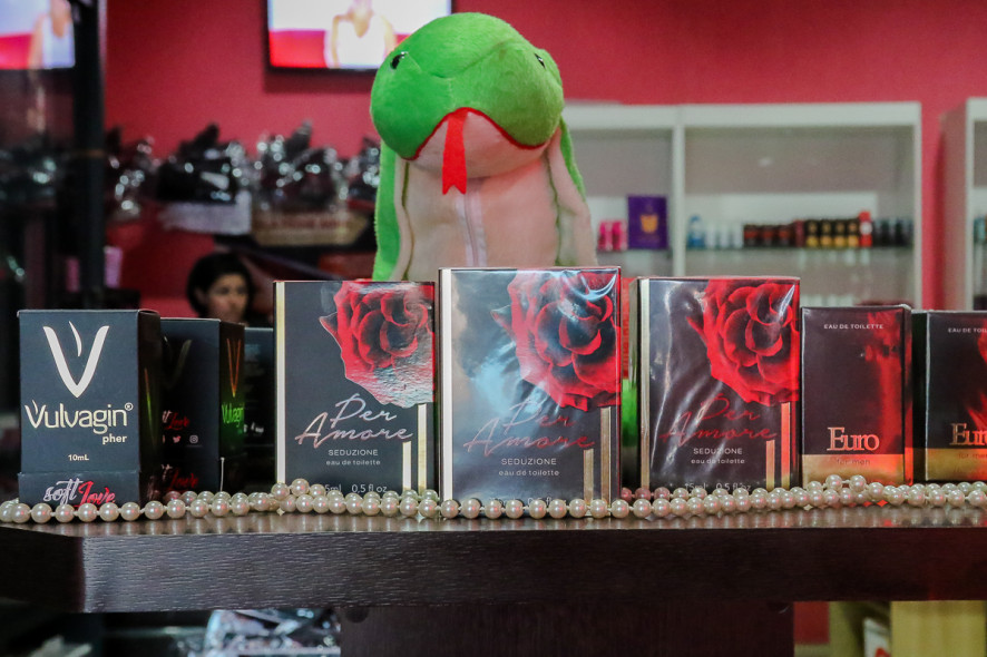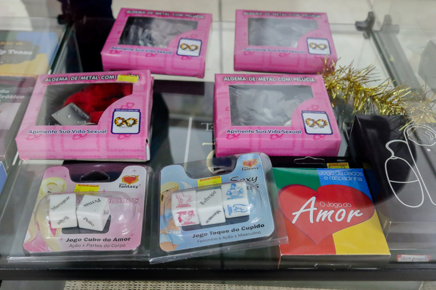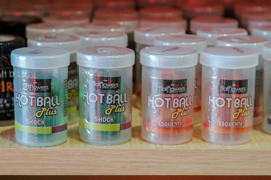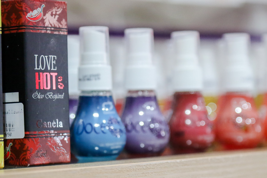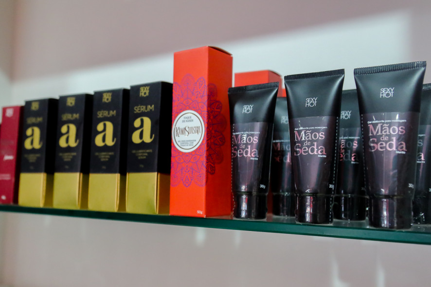 O que mais vende: anestésicos, excitantes femininos e masculino, lubrificante. O preço médio dos lubrificantes é de R$ 25.