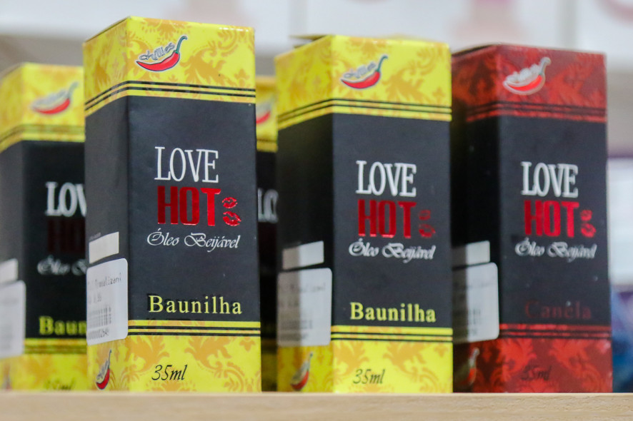 Entre os produtos mais vendidos, estão os cosméticos. “Gel para fazer garganta funda, para sensibilidade anal, para anestesiar boca e corpo, vela que não queima, lubrificantes de vários tipos e sabores. Além dos brinquedos do pompoarismo”, enumera a vendedora do Sex Shop Cuiabá, Nathaly Ferreira.