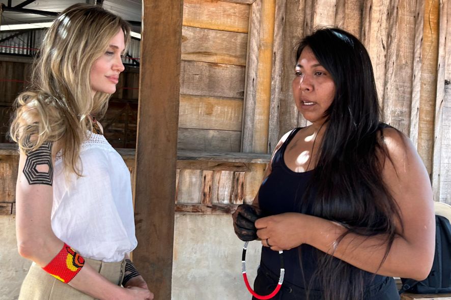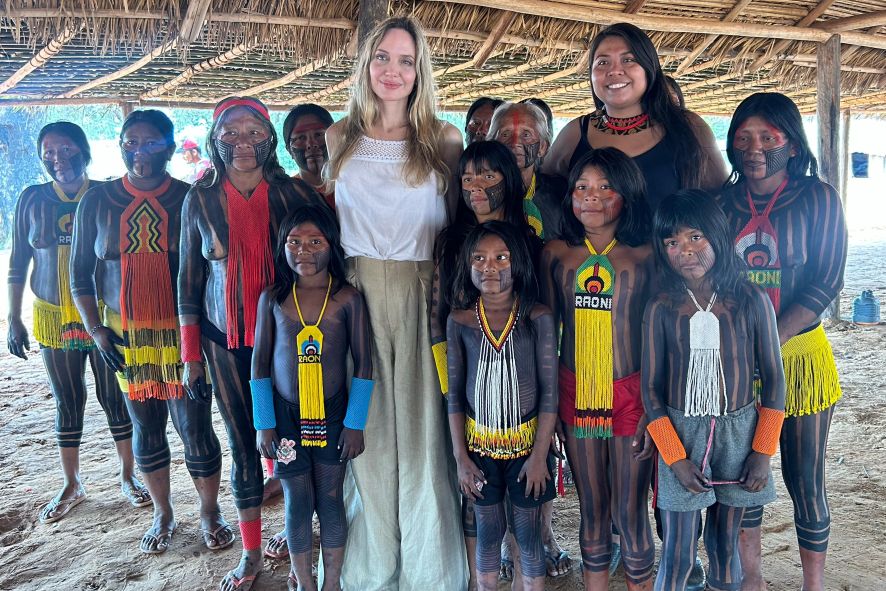 Angelina Jolie visita Xingu e se reúne com líder indígena; veja