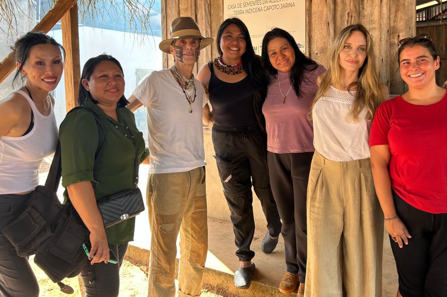 Durante a visita, Angelina se reuniu com o líder da etnia Kayapó na aldeia Piaraçu, localizada no território indígena Capoto-Jarina. Eles conversaram na presença de lideranças indígenas questões prioritárias para a comunidade.