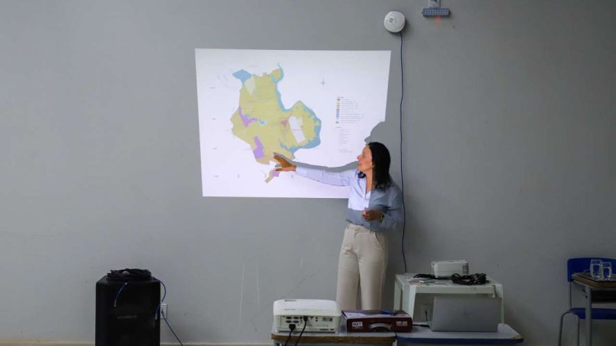 Durante sua exposição, a secretária Manoela Rondon apresentou um panorama do zoneamento urbano, das políticas públicas e dos desafios que influenciam diretamente o desenvolvimento da cidade.