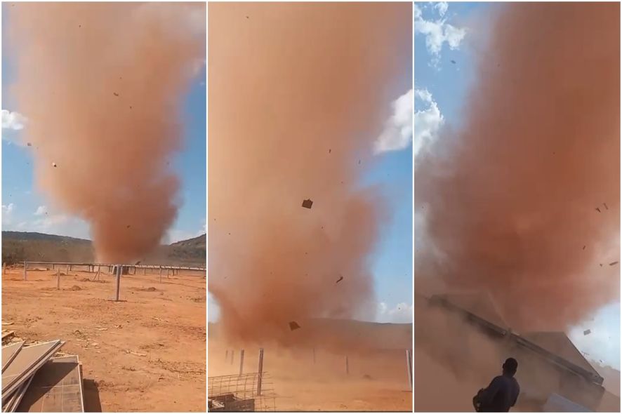Na gravação, Marcos e os colegas brincam com a situação. “Olha, tornado em Mato Grosso. Vem aqui, vem aqui… Olha, rapaz, tá doido, xomano”, disse ele impressionado.