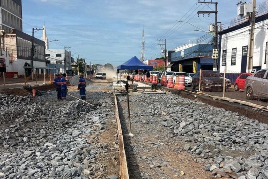 Na região central de Cuiabá, a programação da próxima semana inclui a concretagem da sub-base no trecho entre a Avenida Dom Bosco e a XV de Novembro e as travessias de tubulações.