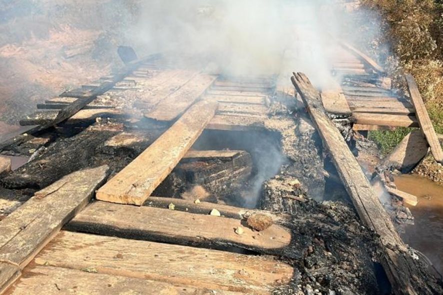 A ponte foi incendiada durante a madrugada desta quarta-feira. Vídeos mostram a ponte ainda em chamas e, depois, ela destruída pelo fogo.