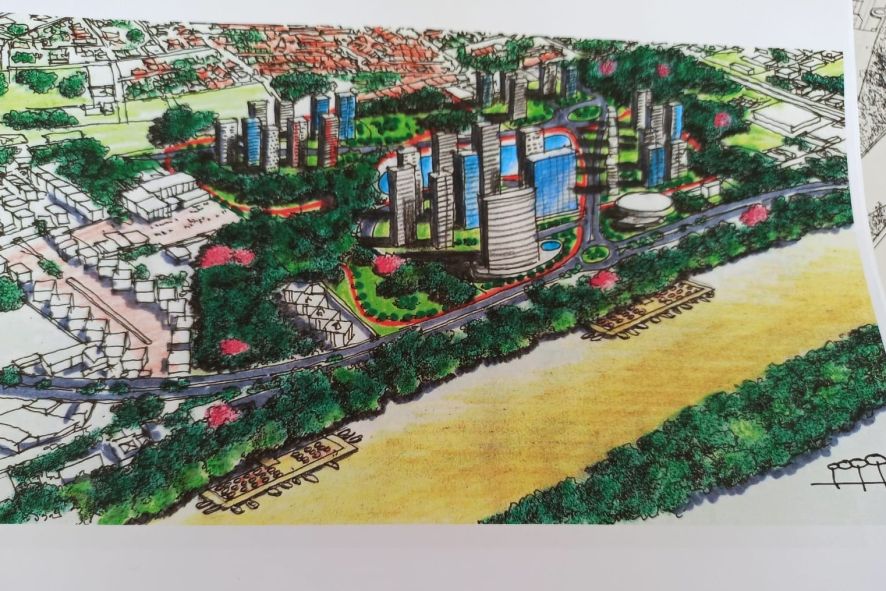A desculpa era que ia ter que desapropriar muito. Mas lembro que os proprietários estavam doidos para vender, só os inquilinos queriam permanecer. A gente tirava esses prédios abandonados e integrava o Morro da Luz. Estava previsto um centro cultural serpenteando o morro. Bem em frente teria a estação central do BRT, que viria do Coxipó, do CPA, de Várzea Grande. Ia se encontrar tudo aqui, no meio da Prainha. Faríamos jardins suspensos, teriam passarelas. Mas foi tudo por água abaixo e ficou essa coisa aí.