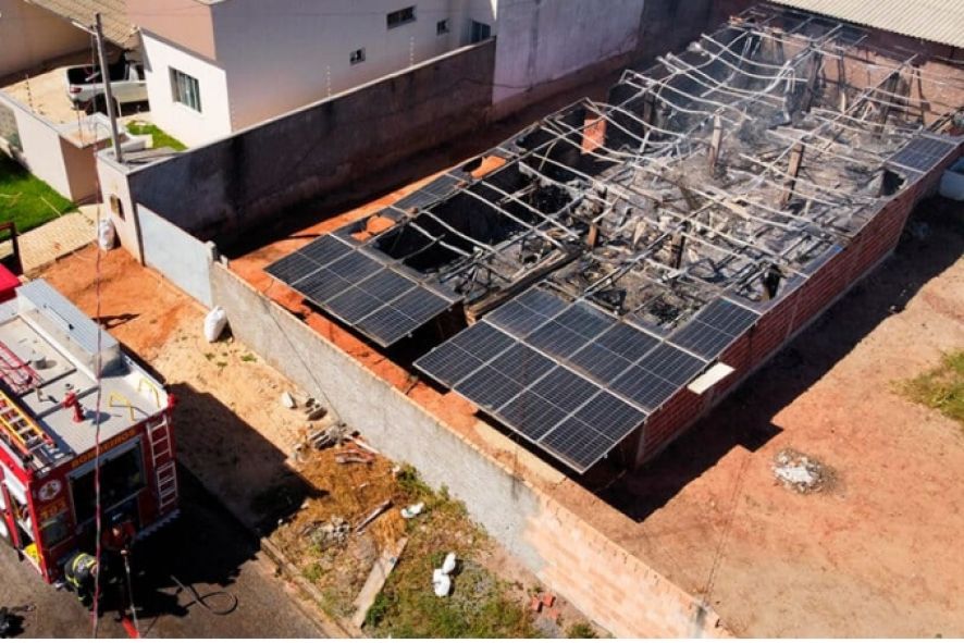 Em placas solares, as chamas se espalham com muita velocidade. Quando o Corpo de Bombeiros chegou à usina, as placas já tinham sido praticamente todas destruídas pelo fogo.