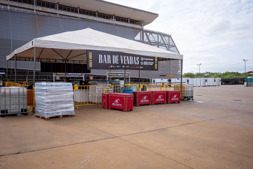 A área dos camarotes, formada por bangalôs, está pronta e equipada. Os acessos para os setores pista premium, pista comum, cadeiras numeradas e arquibancada também estão sinalizados e prontos para receber o público.