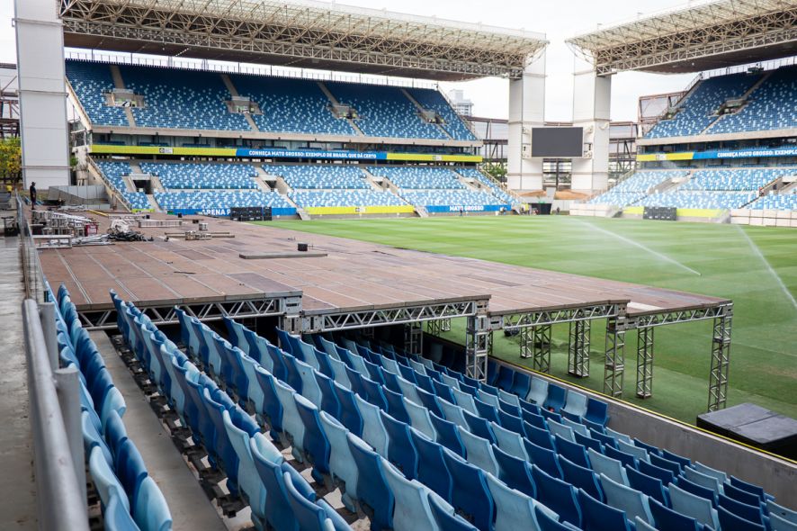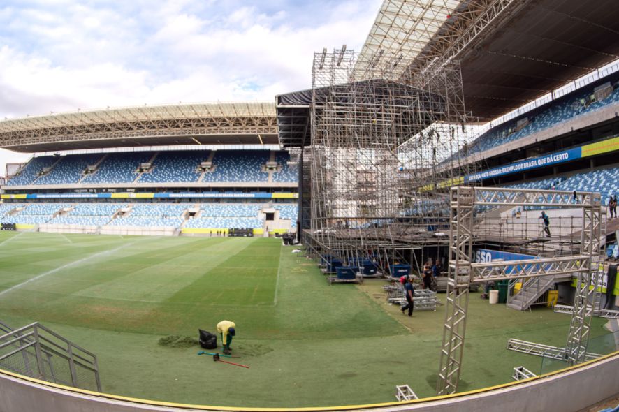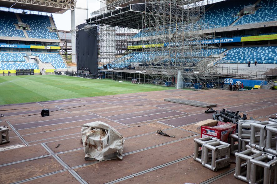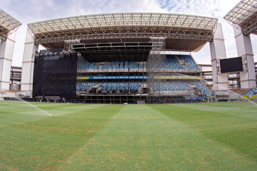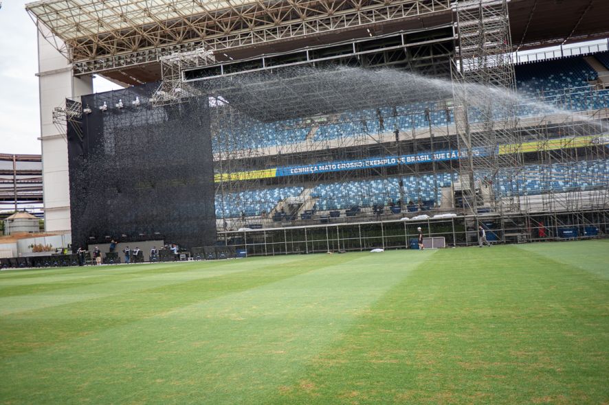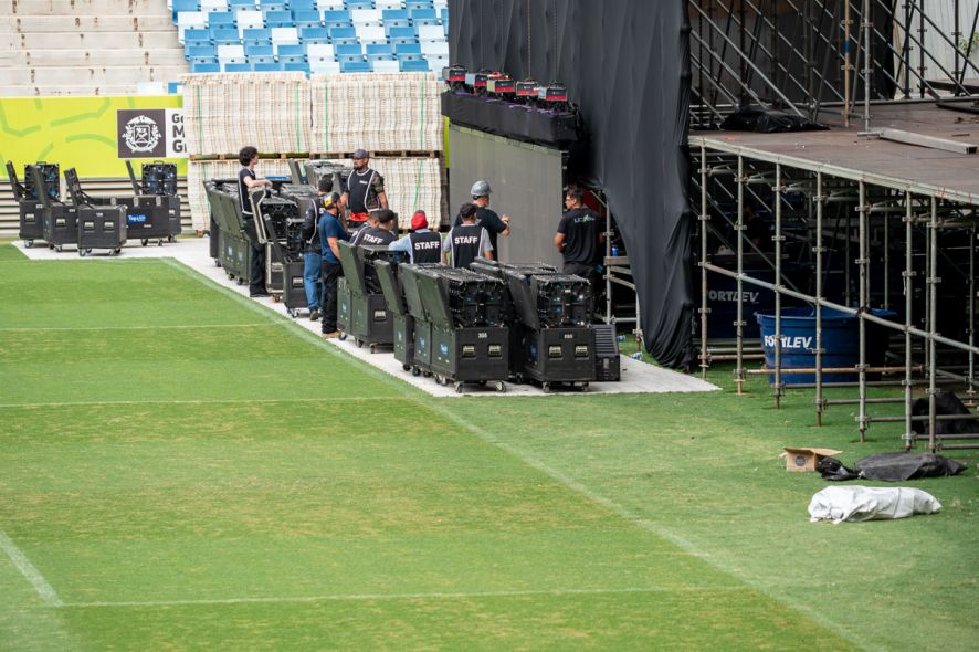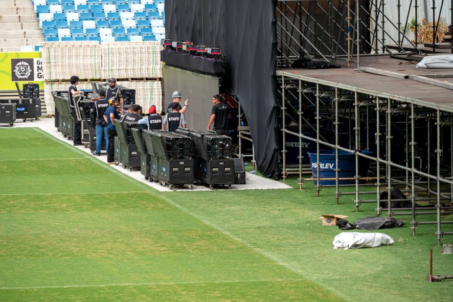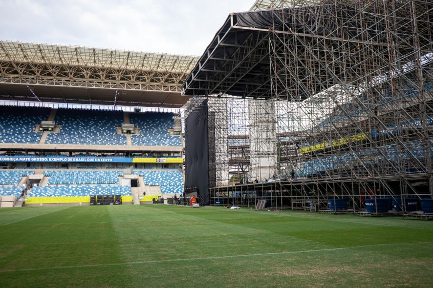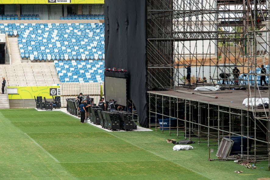 A três dias do aguardado show do Guns N' Roses em Cuiabá, na sexta-feira (31), a reportagem do MidiaNews acompanhou com exclusividade os trabalhos de montagem da estrutura na Arena Pantanal nesta segunda-feira (27).