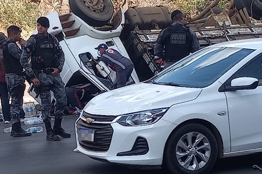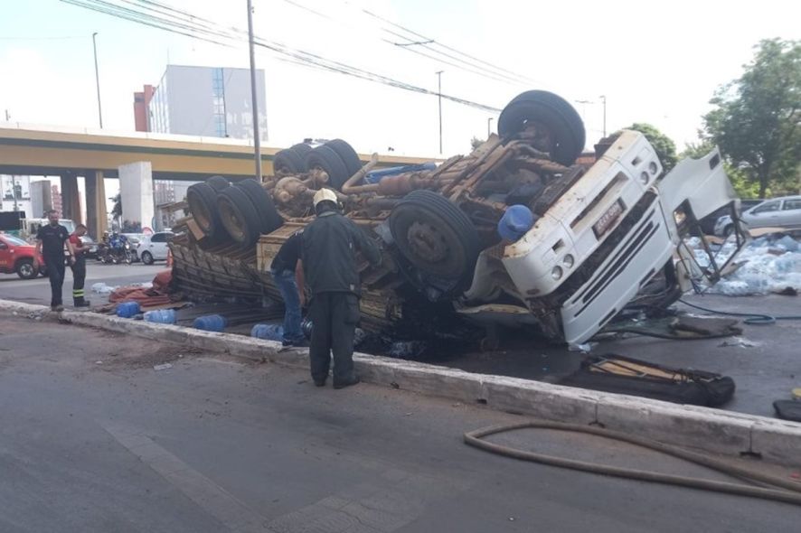Pelas imagens de câmeras de segurança foi possível ver que o caminhão, que transportava fardos de água mineral, descia da Avenida Miguel Sutil.