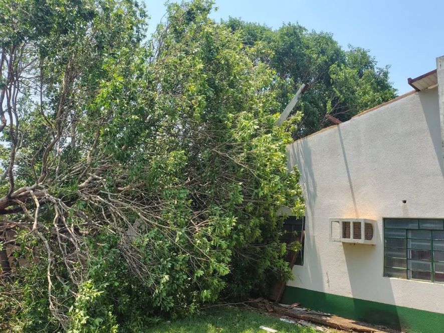 O vendaval também causou destelhamentos em casas, comércios e afetou o Hospital Municipal. Por meio de nota, a Secretaria de Saúde informou que a unidade sofreu danos significativos, o que resultou na suspensão temporária dos atendimentos médicos.