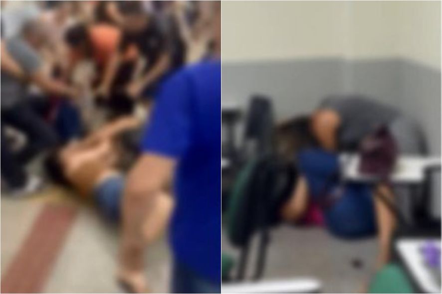 Nas imagens é possível ver que as mulheres começaram com o desentendimento em uma sala de aula. Elas chegaram a trocar golpes no chão, enquanto testemunhas pediam para que parassem.