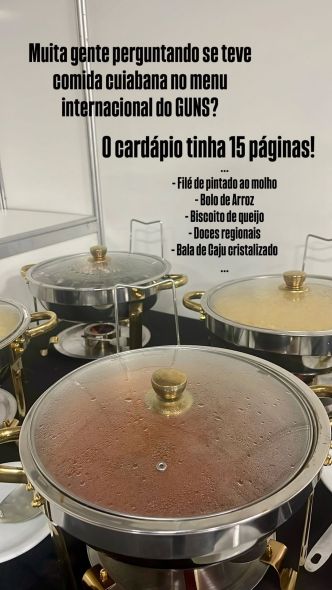 O menu exclusivo preparado para a banda Guns N’ Roses, que se apresentou em Cuiabá na noite desta sexta-feira (31), incluiu pratos tipicamente cuiabanos, como bolo de arroz, biscoito de queijo, filé de pintado ao molho e o tradicional doce de caju.