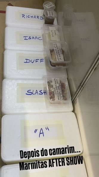 Nas redes sociais, Marcus compartilhou um vídeo mostrando o camarim de Axl Rose, equipado com dois aparelhos de ar-condicionado, mesa de frios, duas poltronas, sofá, freezer com bebidas e banheiro privativo.