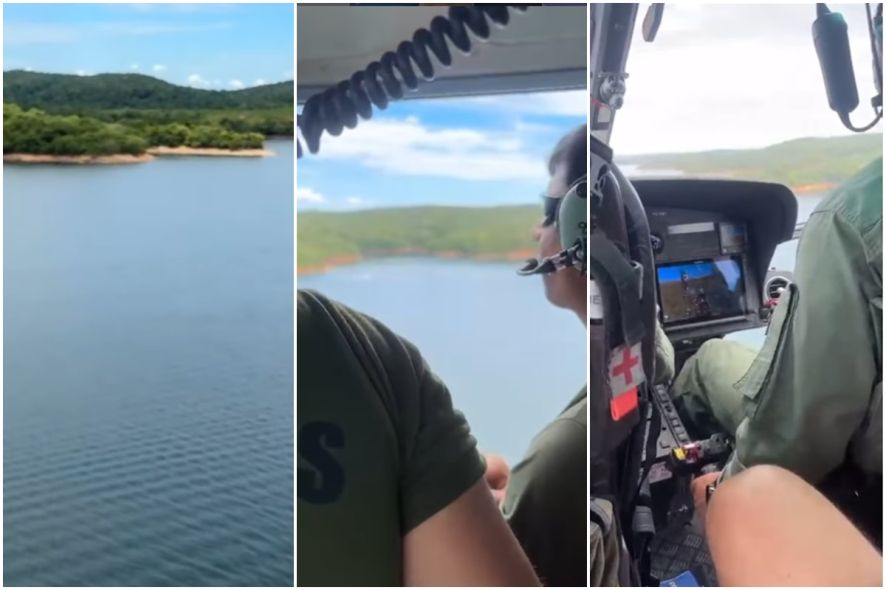 As imagens, publicadas nas redes sociais, mostram a equipe sobrevoando o Lago do Manso com o auxílio de um helicóptero. A operação ocorre em parceria com o Corpo de Bombeiros e a Marinha, com o objetivo de localizar as vítimas após o naufrágio da lancha.