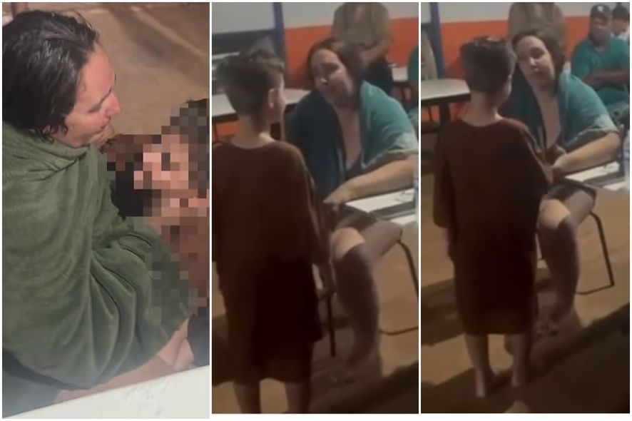 Nas imagens gravadas por populares, a mãe das crianças aparece sentada ao lado do filho de 8 anos, enquanto a outra criança é vista sob os cuidados de uma mulher que auxiliou no atendimento à ocorrência.