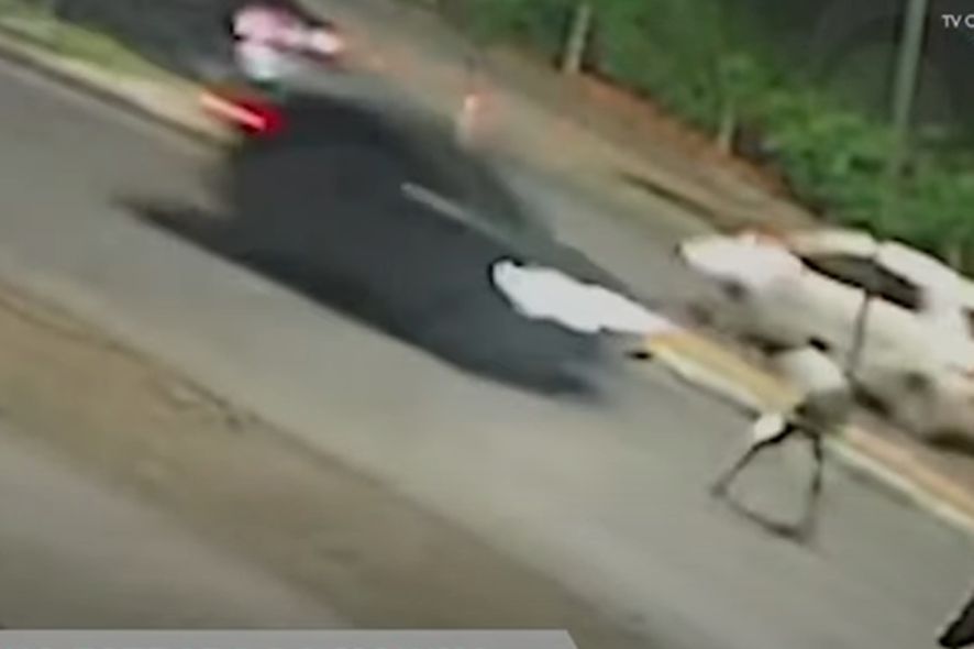 O vídeo mostra o momento que Kaio atravessa a avenida, mas olha apenas para o lado direito, não se atentando ao carro que vem pelo lado esquerdo. Quando ele percebe a aproximação do carro já é tarde demais.